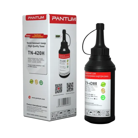 Комплект для заправки картриджа Pantum TN-420HP предназначен для восстановления ресурса черного тонера в принтерах серии Pantum M6700, M7100, M7200, M7300 и P3010/P3300. Состав комплекта включает банку с тонером, обеспечивающую печать до 3000 страниц, а также чип для корректного определения уровня заполнения картриджа.
